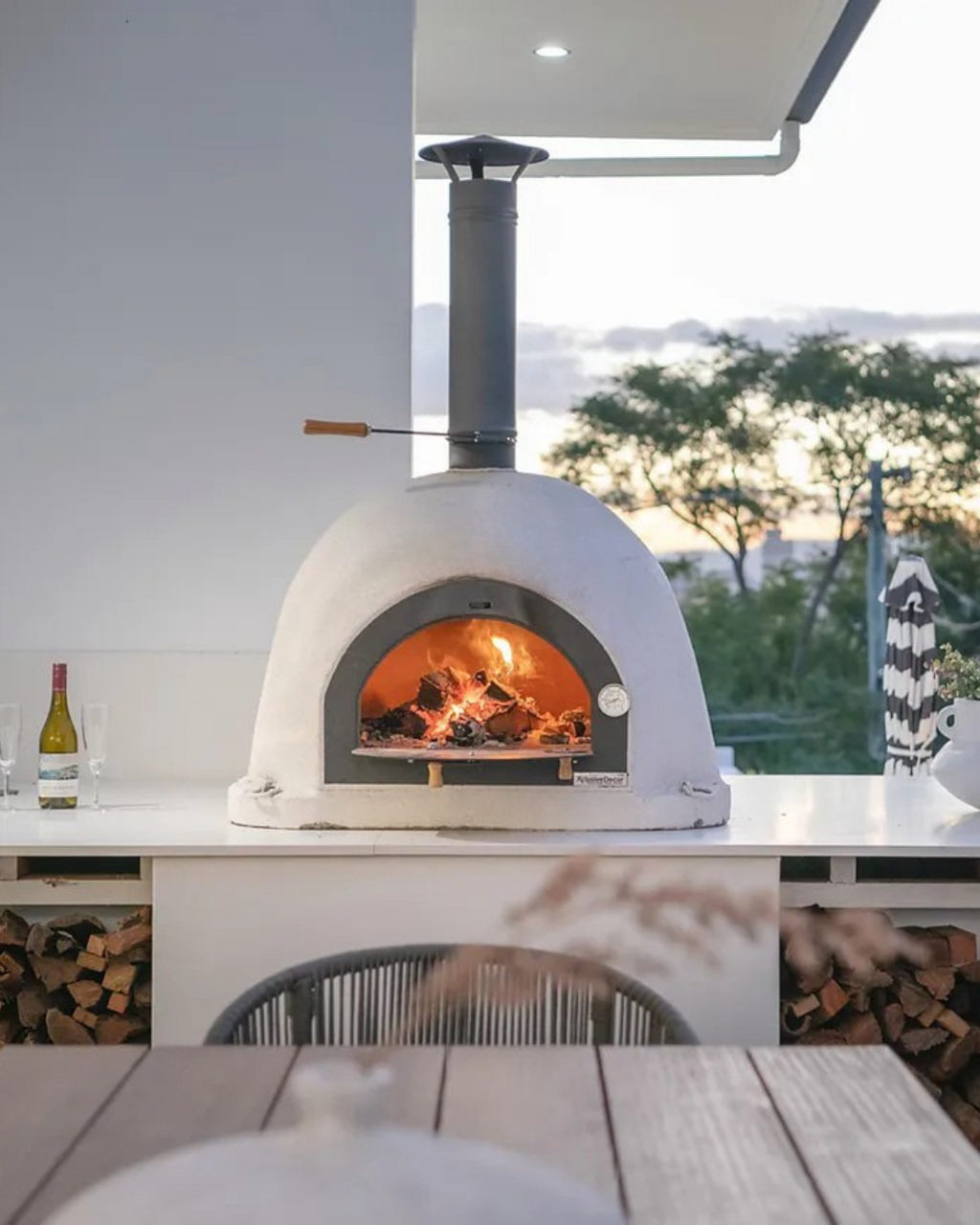 Once cured, light a wood fire inside the oven and allow approximately 20 minutes for the oven to reach optimum temperature. Once up to temperature the oven will retain its heat for a very long period of time. Cook pizzas in 1-2 minutes or cook “low and slow” delicious dishes including roasts, meats, fish, and fresh bread.